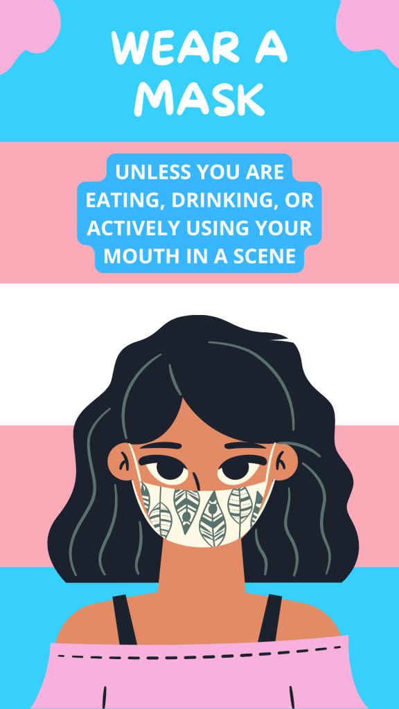 Masks must be worn at all times indoors unless eating, drinking, or otherwise using your mouth. Please remask immediately the minute you are not taking a bite of food, sipping a drink, kissing, etc. While we do not provide masks, a limited number will be at the door in case someone forgets one. IF you want to donate extra masks in cases someone forgets to bring theirs, that would be greatly appreciated.