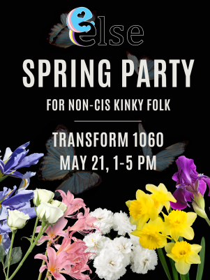 ELSE is an 18+ educational, support, and social kink space for adults who identify as non-cis, including trans, intersex, third gender, agender, two-spirit, & nonbinary folx. We are centered in the San Francisco Bay Area and open to people who don’t feel their assigned gender at birth fully matches their gender identity.